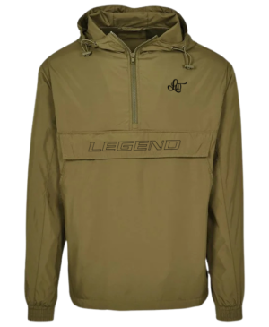 Shop the Urban Legend Anorak in black/Grey and olive green. A lightweight, water-repellent unisex windbreaker with adjustable hood, utility pocket and streetwear design. Perfect for urban style.